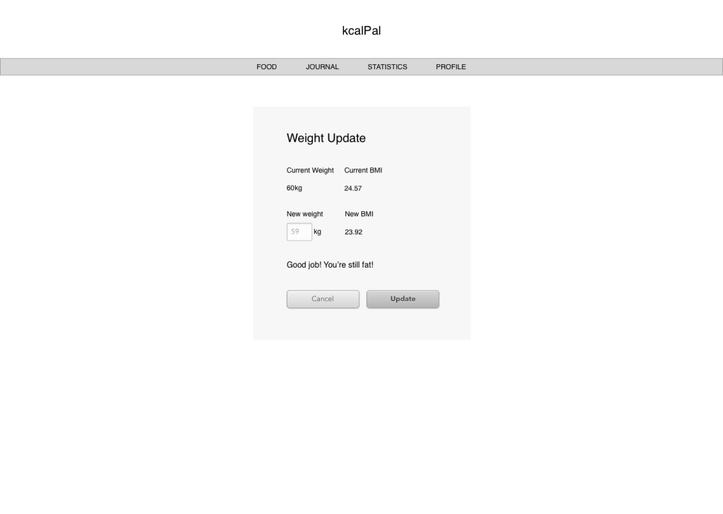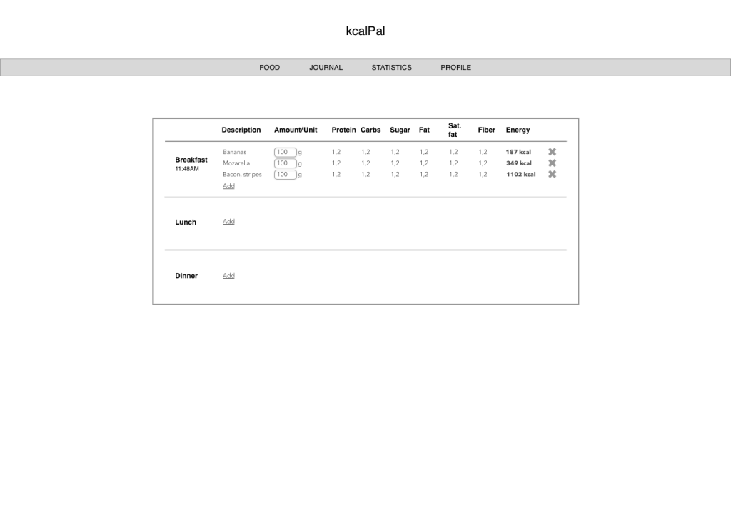 In the prototypes it is clear to the user what page they are on it is neatly laid out. On adding food ,meals and or recipes the system will notify the user it has been successfully added and or failed due to a reason displayed to the user.