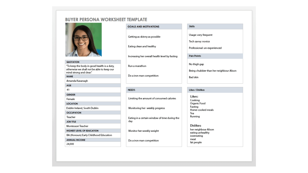 She wants a application that motivates her to keep on track sending daily and helpful reminders about logging food and also a quick and easy UI to follow.